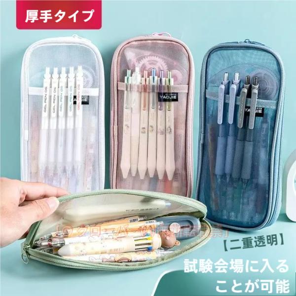 ペンケース メッシュ 筆箱 ペンポーチ 透明 シンプル 小学校 中学 高校 学生 小物入れ シンプル クリア おしゃれ 女子 男子 文房具 ノー ペン