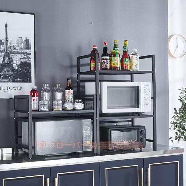 レンジ上ラック 3段 伸縮式 電子レンジ ラック 幅39-66センチレンジ台 トースターラック キッチンラック 台所収納 簡単組立 レンジ棚 省スペース