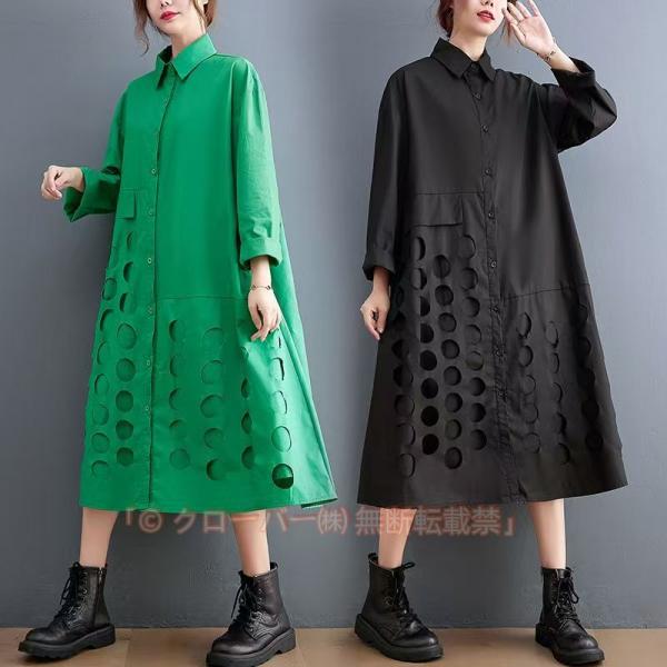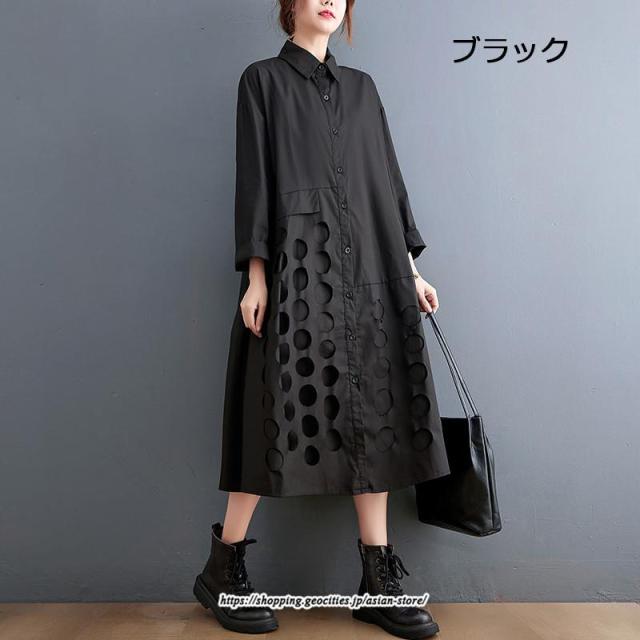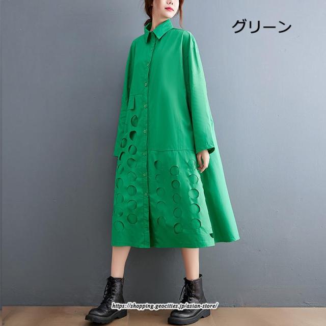 ロングワンピース シャツワンピ レディース ギャザー 大人可愛い 森ガール さりげなく体型カバー オシャレ 大きいサイズ