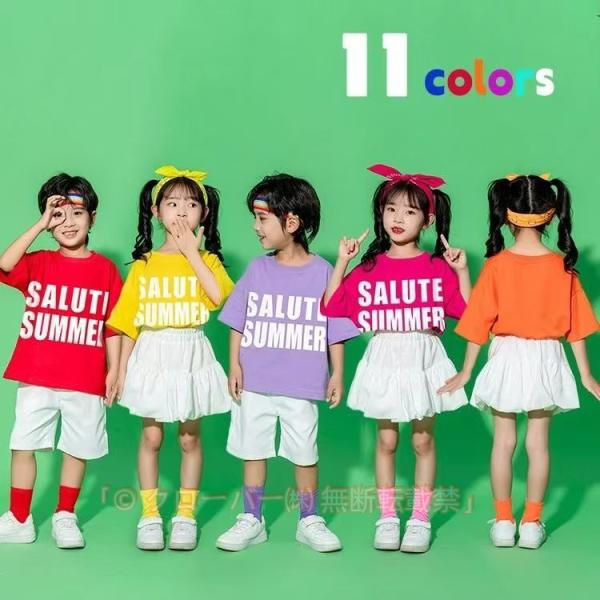 11色 赤 橙 黄 青 紫 虹色 オーバーオール キッズ ダンス衣装 セットアップ 女の子 男の子 子ども 子供 チア チアガール トップス パフォーマンス おしゃれ ゆ