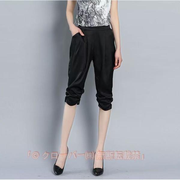 全4色×6サイズ!サテン素材 サルエルパンツ レディース 7分丈パンツ クロップドパンツ サテン シルク ストレッチパンツ 楽チン シンプル 無地 春
