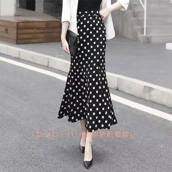 ロングスカート マーメイドスカート ロング スカート マキシ丈スカート マキシスカート タイト ハイウエスト 無地 水玉柄 着痩せ 薄手 春 夏 秋