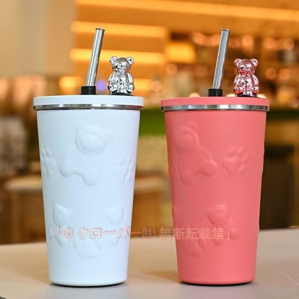 蓋付き おしゃれ 保温 タンブラー 保冷 くま タンブラー クマ かわいい 水筒 600ML トラベルタンブラー ステンレスマグカップコ