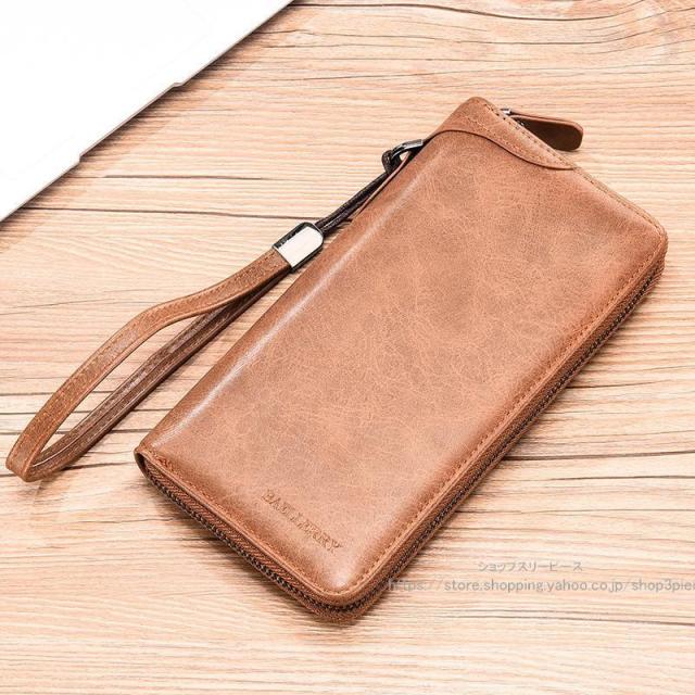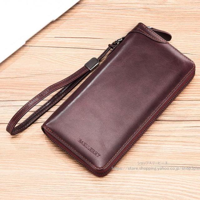 長財布 メンズ ロングウォレット 財布 ダブルファスナー ストラップ付き レトロ 無地 大容量 柔らか ビジネス シンプル 携帯入れ 父の日 おしゃれ