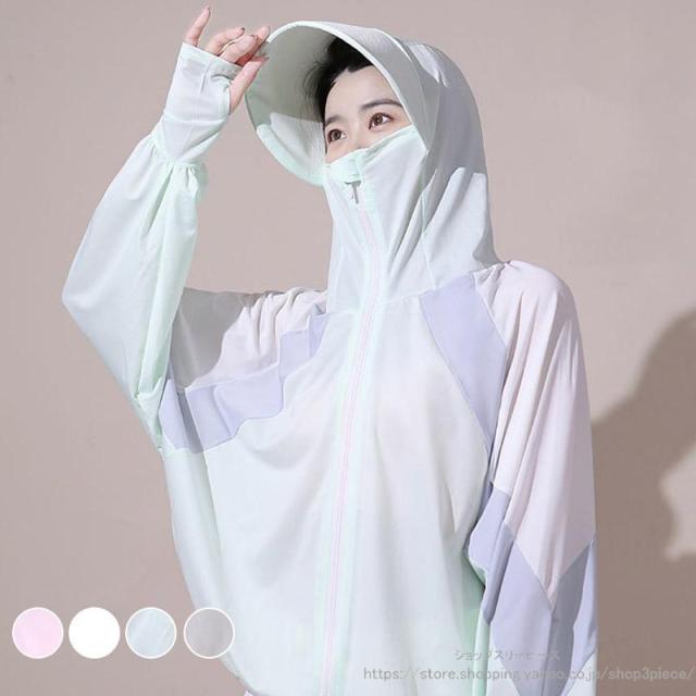 uv パーカー 指穴 uvカット ひんやり 接触冷感 ラッシュガード 可愛い フード付き カーディガン 日焼け止め 軽量 長袖 薄手 吸水速乾