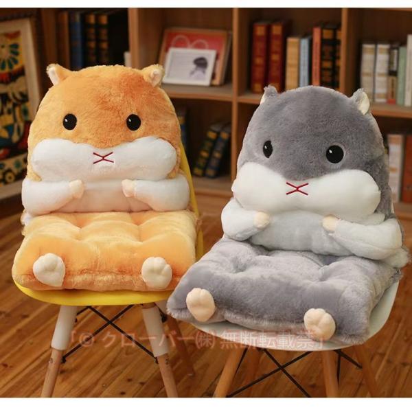 ハムスター 椅子クッション 背もたれクッション ぬいぐるみ もこもこ チェアクッション 座布団 長時間 イス用 暖かい 厚手 背もたれ付き ふかふか