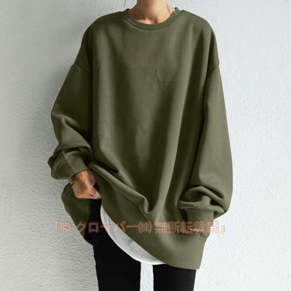 トレーナー レディース 秋 春 カレッジ スウェット カットソー 長袖 大きめ ゆったり 重ね着 トレーナー レイヤード風 体型カバー シンプル カジュアル 大きいサイズ ゆるっと ビッグシルエット 幅広カフス メンズライク