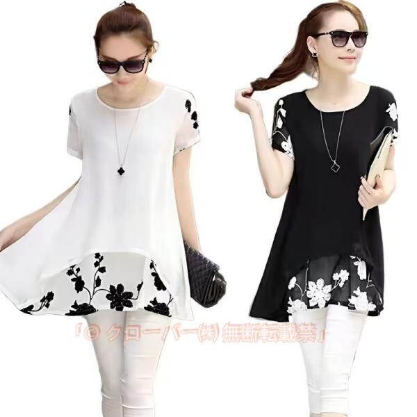 チュニックワンピースカットソーレースAラインシフォンチュニック半袖花柄トップス夏レディースブラックホワイト