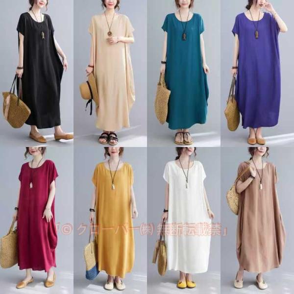 ワンピース ロングワンピース 夏ワンピース バルーンタイプ 体型カバー ロング丈 シンプル カラバリ