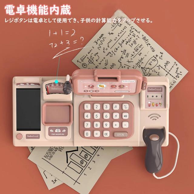 サウンドとライトもこのゲームセットに含まれています。お子様はレジからスピーカーと話すことができます。キャッシュレジスタには残高も含まれています-キャッシュボックスの開閉、電卓機能、物理的なスキャンによるインテリジェントな識別、携帯電話のスキャンコードによる便利な支払い機能。