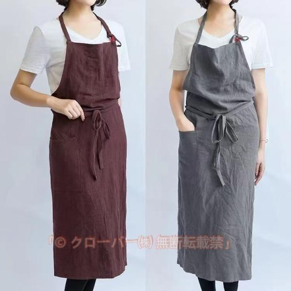 エプロン リネン おしゃれ ワンピース レディース メンズ リネンエプロン カフェ キッチン 北欧 保育士 綿 麻 無地 男女兼用 韓国 細身