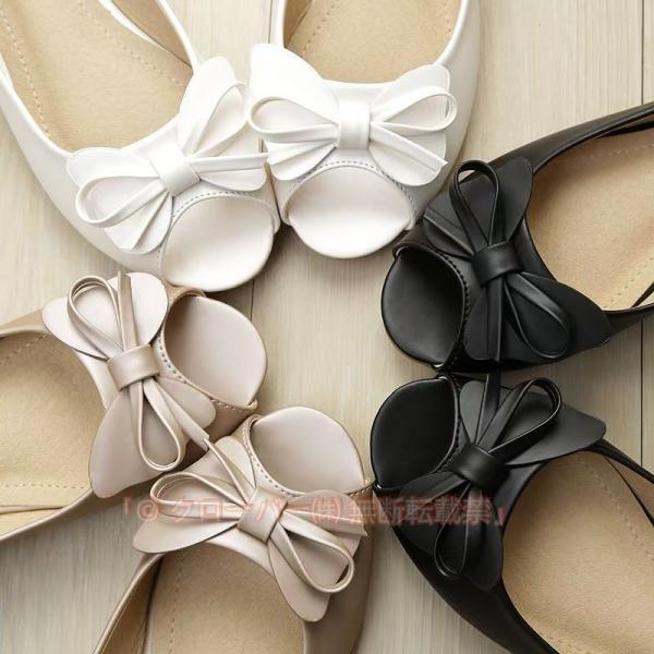 ぺたんこパンプス オープントゥリボン サンダル フラット ローヒール 可愛い サイドオープン フラットシューズ 美脚 クッション カジュアル おしゃれ