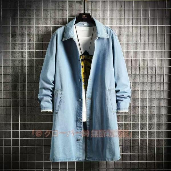 デニムコート メンズ スプリングコート ステンカラー コート ロング丈 デニムジャケット アウター ブラック ブルー