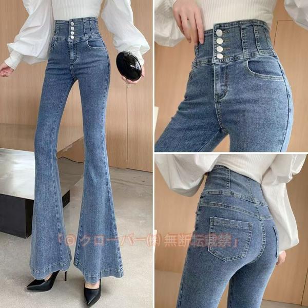 デニムパンツ ブーツカット フレア 美脚 スリム 秋 おしゃれ ハイウエスト ボトム レディース ストレッチ パンタロンパンツ ジーンズ Gパン