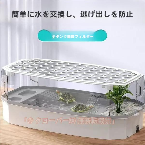 カメ用水槽 大きい カメ 水槽 飼育ケース亀用水槽 水循環ろ過システム 亀ケージ カメ ボックス カメ槽 観察 排水孔 階段 エサ皿 滑り止め 休憩プラットフォーム