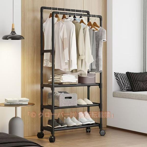 ハンガーラック 幅57.5×奥行30×高さ143cm ミニ洋服ラック 3段棚付き キャスター付き ダブルロッド 組立品 多機能 軽量型 頑丈 コンパクト 簡単組み立て おしゃ