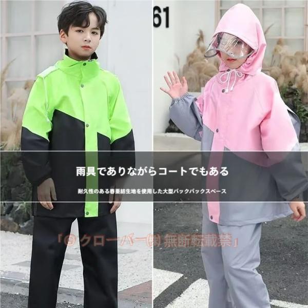 レインコート キッズ 子供 ランドセル対応 長袖 上下セット レインウェア 2点セット ズボン レインパンツ 小学生 中学生 防水 雨具 カッパ 合羽