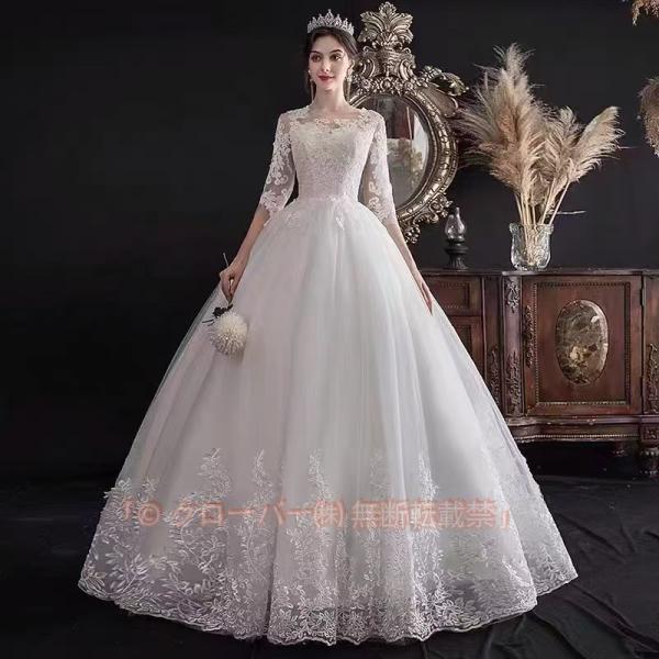 ウェディングドレス 五分袖 ビスチェドレス 白 チュール 花嫁ドレス 結婚式ドレス ホワイト ノースリーブ 海外挙式 二次会ドレス 袖あり Aライン