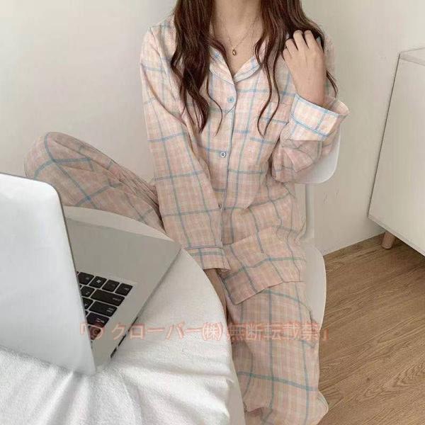 パジャマ レディース 大きいサイズ 前開き 長袖 可愛い チェック 入院 産後 おしゃれ 春 秋 長ズボン パジャマ ルームウェア 上下セット シャツパジャマ 部屋着