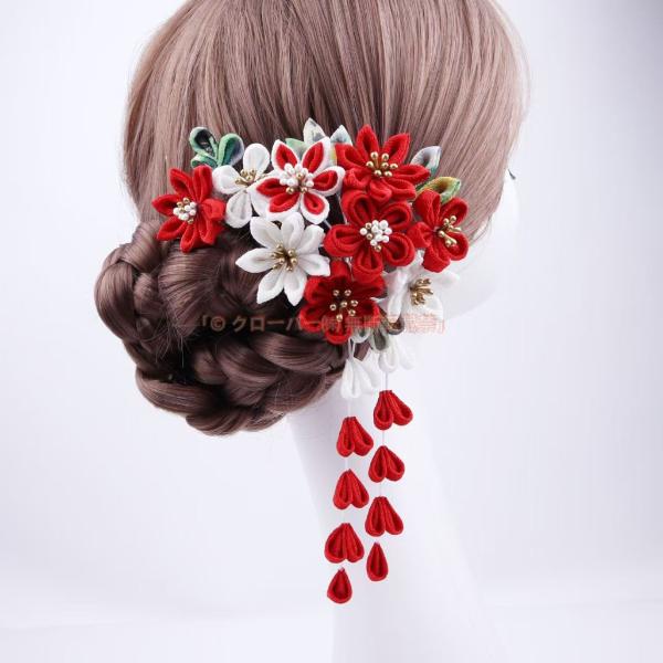 2点セット 髪飾り ヘアアクセサリー 和装小物 つまみ細工 ヘッドドレス 成人式 卒業式 アレンジ イベント レッド パープル ピンク 着物 浴衣