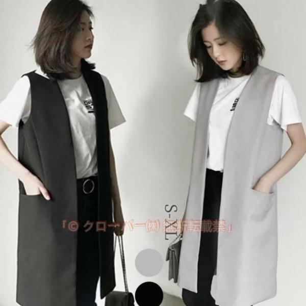 ロングコート 春 レディース ベスト ノースリーブ ロングジレ トレンチコート 無地 ジレンチ ロングベスト ジレ 秋 夏 大きいサイズ 20代 30代 40代