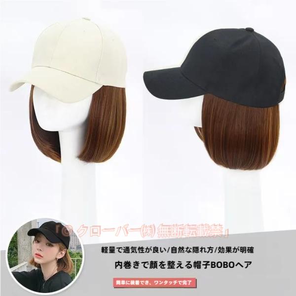 キャップ 髪付き帽子 毛付き帽子 ショート ウィッグ付き帽子 変装 ボブ 髪型 医療用ウィッグ 可愛い 韓国風 自然 おしゃれ イメチェン