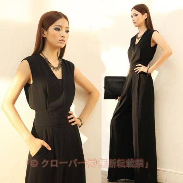 かっこいい パンツドレス ジャンプスーツ パーティードレス パンツ 大きいサイズ 3L 4L 5L オールインワン レディース ワイドパンツ 袖なし ノースリーブ Vネック 黒 ブラック フォーマル ドレス 結婚式 服装 女性 お呼ばれドレス パンツスタイル 韓国 ファッション モード系 クール ぽっちゃり 20代 30代 40代