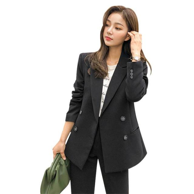 トレンドのコンパクト丈ジャケットと、ストレートパンツをセットした2点セットスーツ
