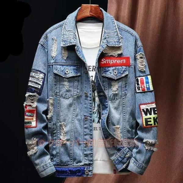 メンズ デニム ジャケット ワッペン ジーンズ ジャンバー 刺繍 Gジャン ビンテージ 派手細身