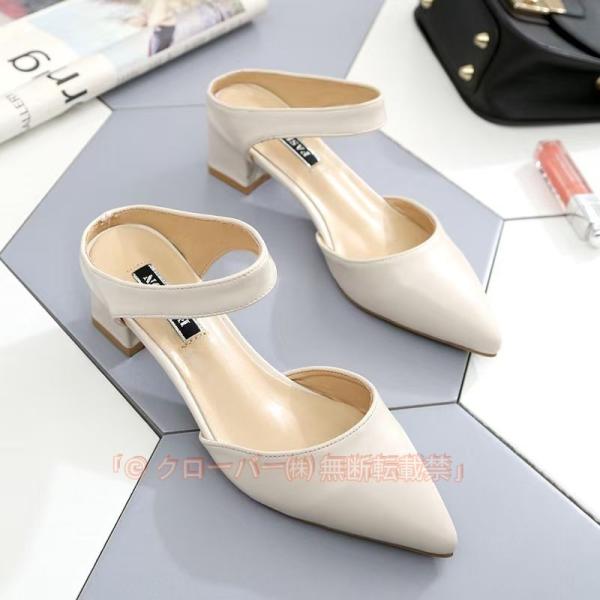 ミュールパンプスサンダル レディース ヒールサンダル ポインテッドトゥ 靴 サボサンダル かかとなしパンプス チャンキーヒール 春夏 ローヒール 美脚