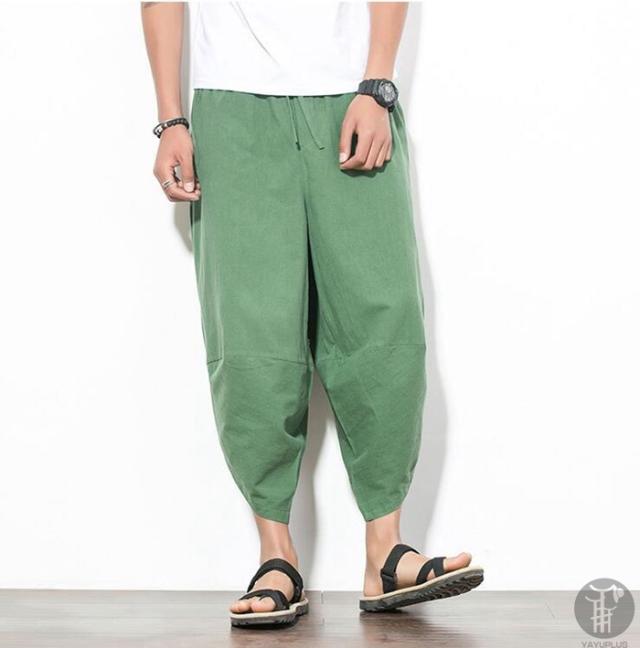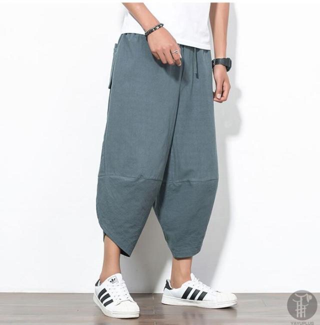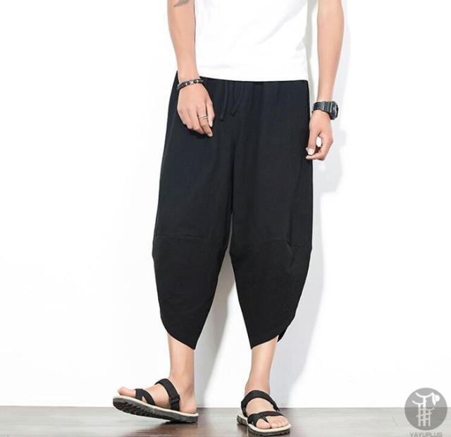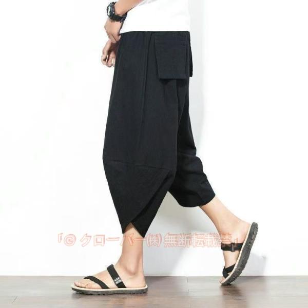 サルエルパンツ ワイドパンツ メンズ 無地 綿麻風 カジュアル メンズズボン ガウチョパンツ 7分丈 代引不可