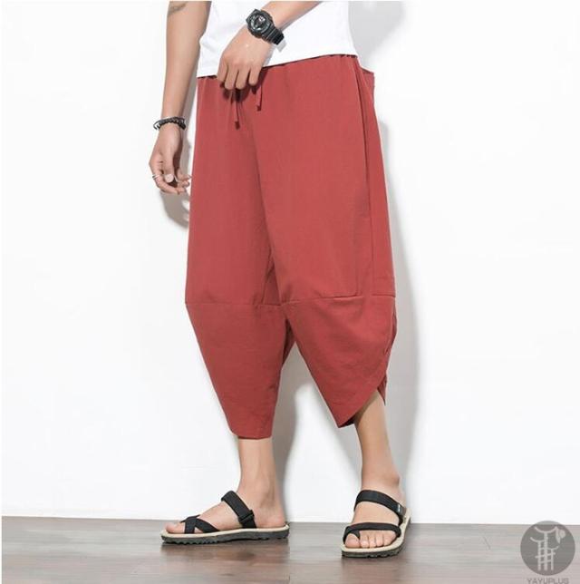 ワイドパンツ メンズ サルエルパンツ 無地 綿麻風 カジュアル メンズズボン ガウチョパンツ 9分丈 ゆったり 大きいサイズ 春夏 サルエル パンツ アジアン