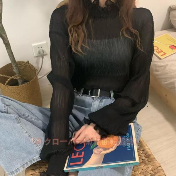 2022年新作 韓国ファッション レディース服 タートルネック シースルー フリル トップス