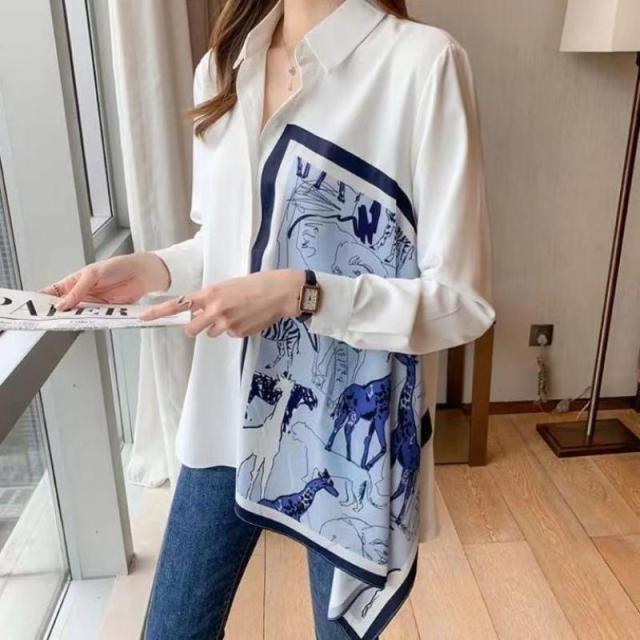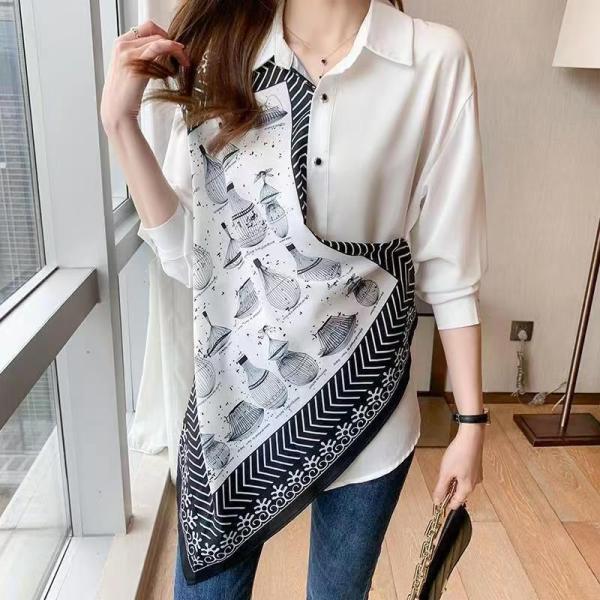1. デザイン:独自のアシンメトリーデザインと総柄ではないシャツ。普段のブラウスとしても、ラップ風にも着こなせます。