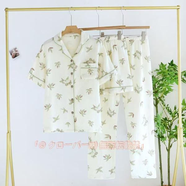 ガーゼパジャマ レディース 綿 ダブルガーゼ 二重ガーゼ パジャマルームウエア 半袖 花柄 部屋着セットアップ3点セット半袖半ズボン長ズボン
