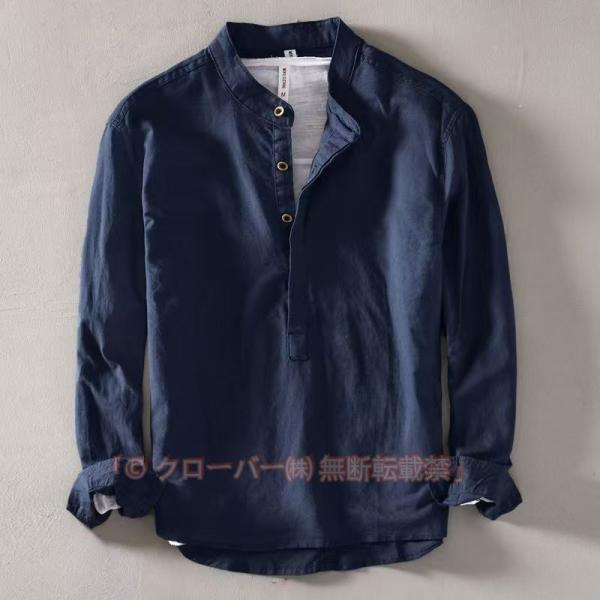 シャツ 綿麻 麻シャツ プルオーバーシャツ メンズ バンドカラー シャツ 長袖 リネンシャツ ボタンシャツ カジュアルシャツ