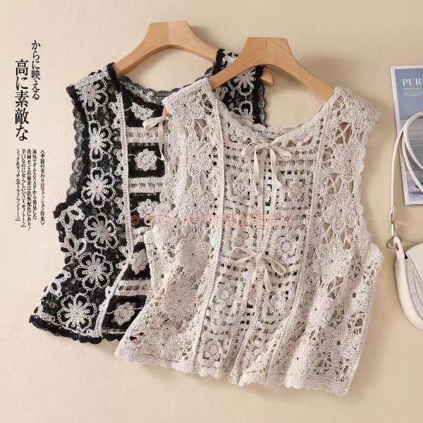 ベスト レースベスト レディース 春 夏 40代 花柄レース タンクトップ トップス vネック 透かし編み 薄手 重ね着 ベストノースリーブ タンク