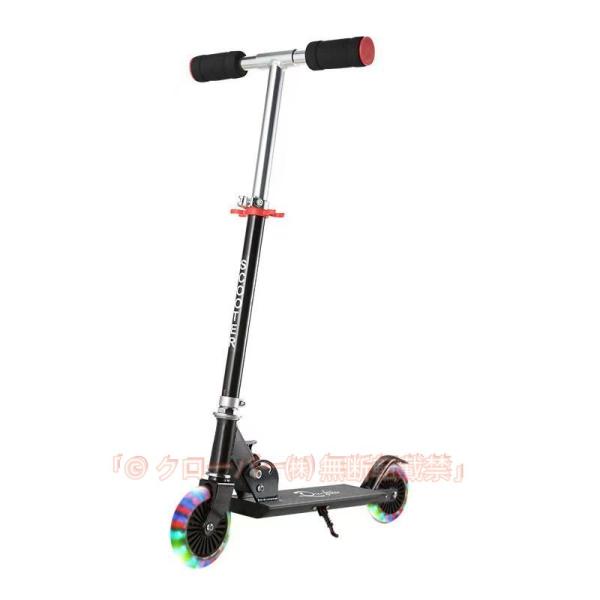 ・LED点滅ホイール:電池不要の光るLEDホイール搭載。子供がキックスクーターに乗ると、ホイールを回すだけでカラフルに点灯します。見た目のかっこよさでお子様が喜ばれるだけでなく、夕暮れ、夜も目立つので、交通安全の役割もします。