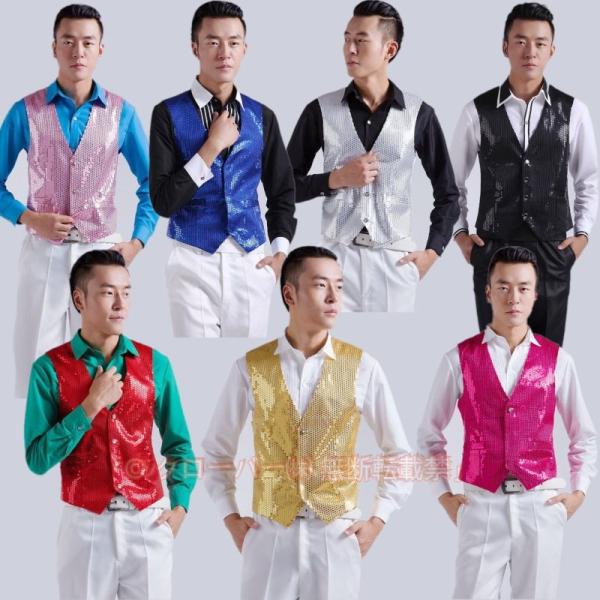 ベスト メンズ トップス スパンコールベスト キラキラ 紳士用 フォーマル イベント ステージ衣装カラオケ ダンス衣装 舞台 結婚式 演出服 7色
