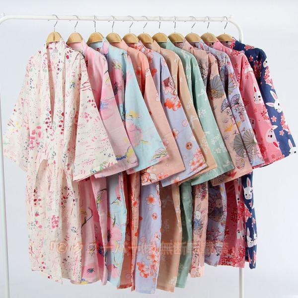 バスローブ レディース メンズ パジャマ 甚平 浴衣式 ワンピース 和風 前開き 半袖 肌触り 花柄 夏 薄手 総柄