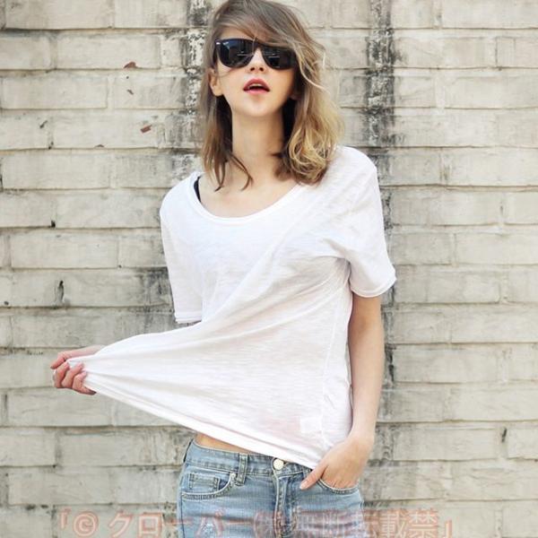 Tシャツ レディース 半袖 カットソー おしゃれ 安い 無地 カットオフ 春 夏 コットン スラブTシャツ