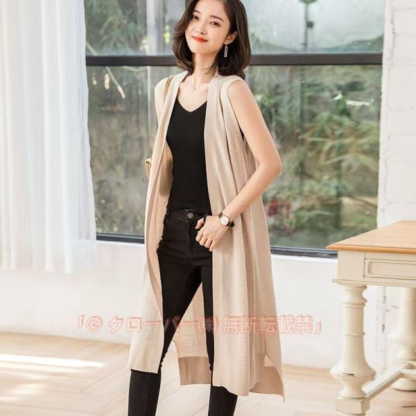 ロングベスト ジレ レディース 春夏 ニット チョッキ カーディガン 羽織 無地 着痩せ ノースリーブ 薄手 アウター 着回し 通勤 お出かけ