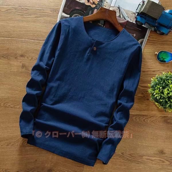 リネンtシャツ メンズ 綿麻 シャツ リネンシャツ トップス Tシャツ vネック 長袖Tシャツ 麻 麻混 リネン カジュアル 薄手 春 夏