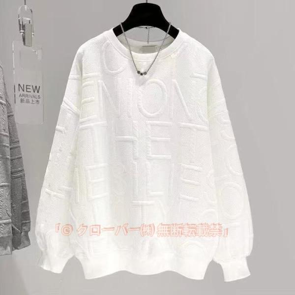 トレーナー 長袖 クルーネック スウェット 型押し ロゴ 英語 エンボス加工 アルファベット パーカー レディース ロング丈 カジュアル プルオーバー