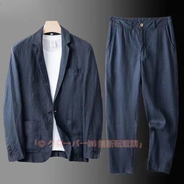 ゆったり メンズ スーツ リネン セットアップ サマージャケット 紳士服 テーラードジャケット パンツ トップス 涼しい 麻 長袖 ブレザー リネンパ