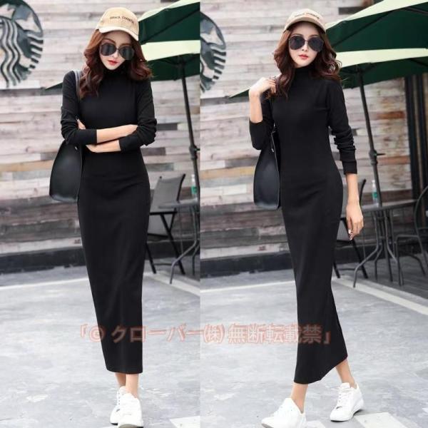 マキシワンピース レディース 秋冬 スウェットワンピース ハイネック 黒タイトスカート ひざ下ワンピース インナー 細身 大きいサイズ オシャレ 大人