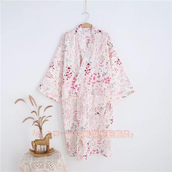 寝巻き ガーゼ 浴衣 ガウン レディース お風呂上がり バスローブ ルームウェア 和風パジャマ 花柄 和風 旅館 温泉 入院