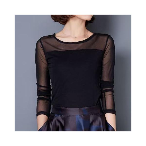 シースルー トップス インナー ハイネック Uネック レディース ブラウス チュール 長袖 カジュアル 無地 tシャツ 長袖tシャツ
