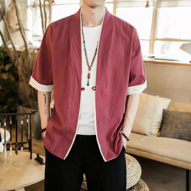 カーディガン メンズ 綿麻 羽織 カットソー アウター トップス 上着 薄手 五分袖 おしゃれ 美シルエット コーデ ファッション 無地 夏