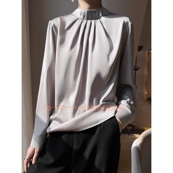 ブラウス シャツ レディース 春 シャツ ブラウス サテンブラウス トップス シャツ 長袖 無地 光沢 上品 大きいサイズ 通勤 OL 事務 lwy9476